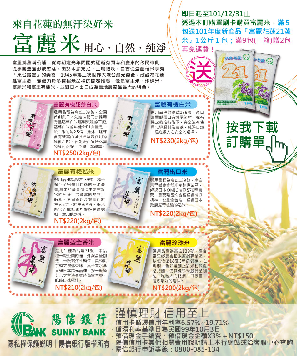 陽信卡友專屬-花蓮富麗米優惠