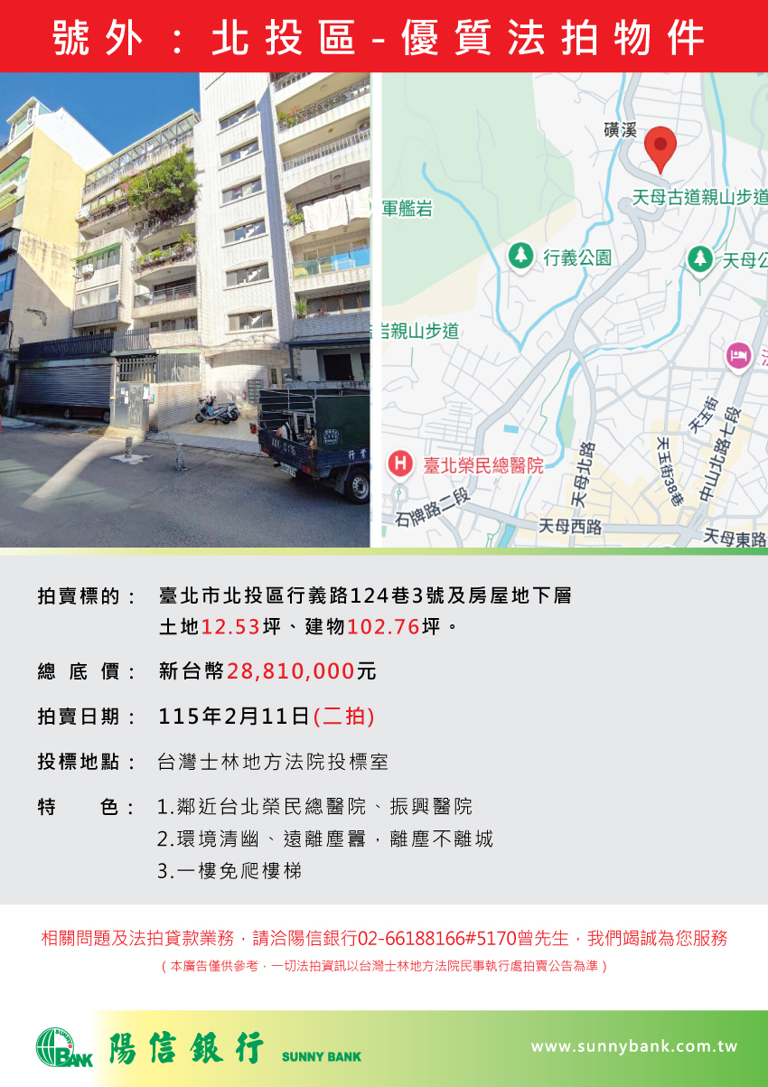 【法拍公告】號外:北投區-優質法拍物件!
