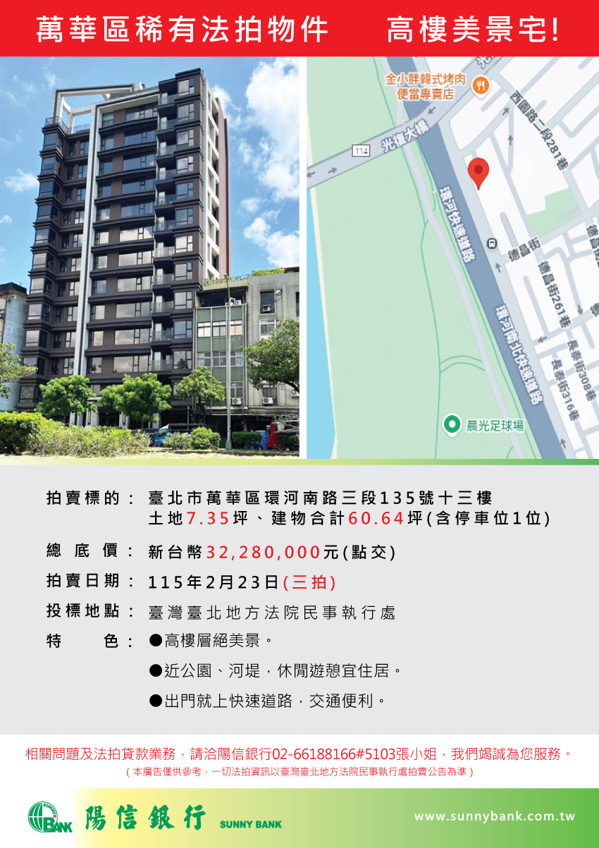 【法拍公告】萬華區稀有法拍物件-高樓美景宅!