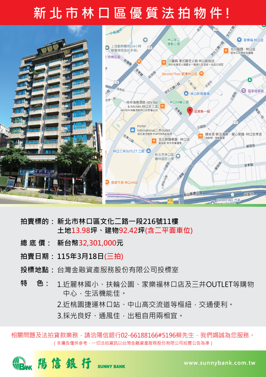 【法拍公告】新北市林口區優質法拍物件!