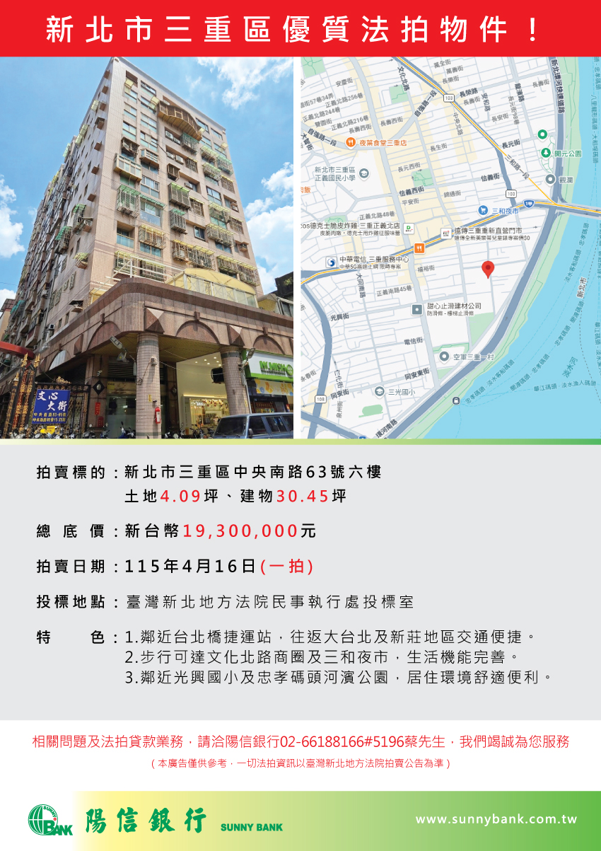 【法拍公告】優質法拍物件資訊-新北市三重區優質法拍物件!