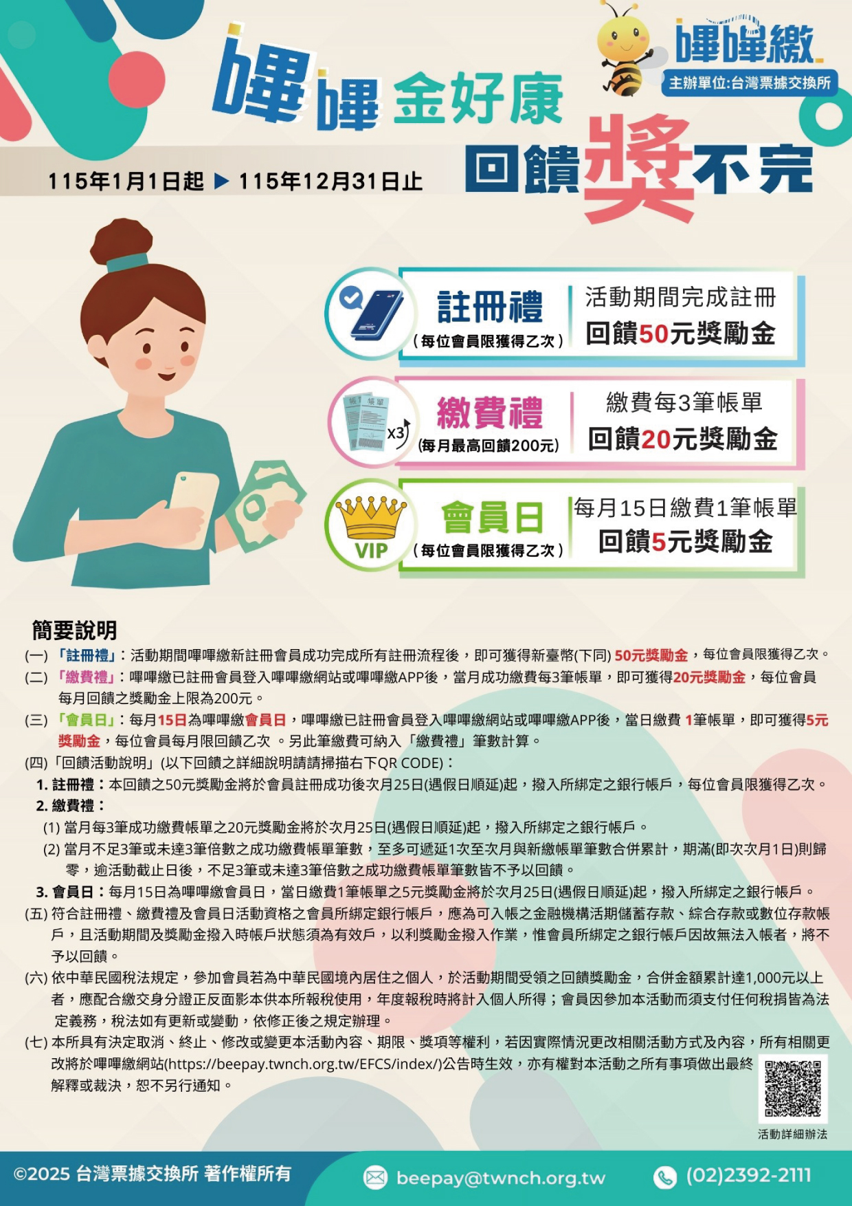 【活動宣導】票交所續辦嗶嗶繳115年「嗶嗶金好康,回饋獎不完」推廣活動